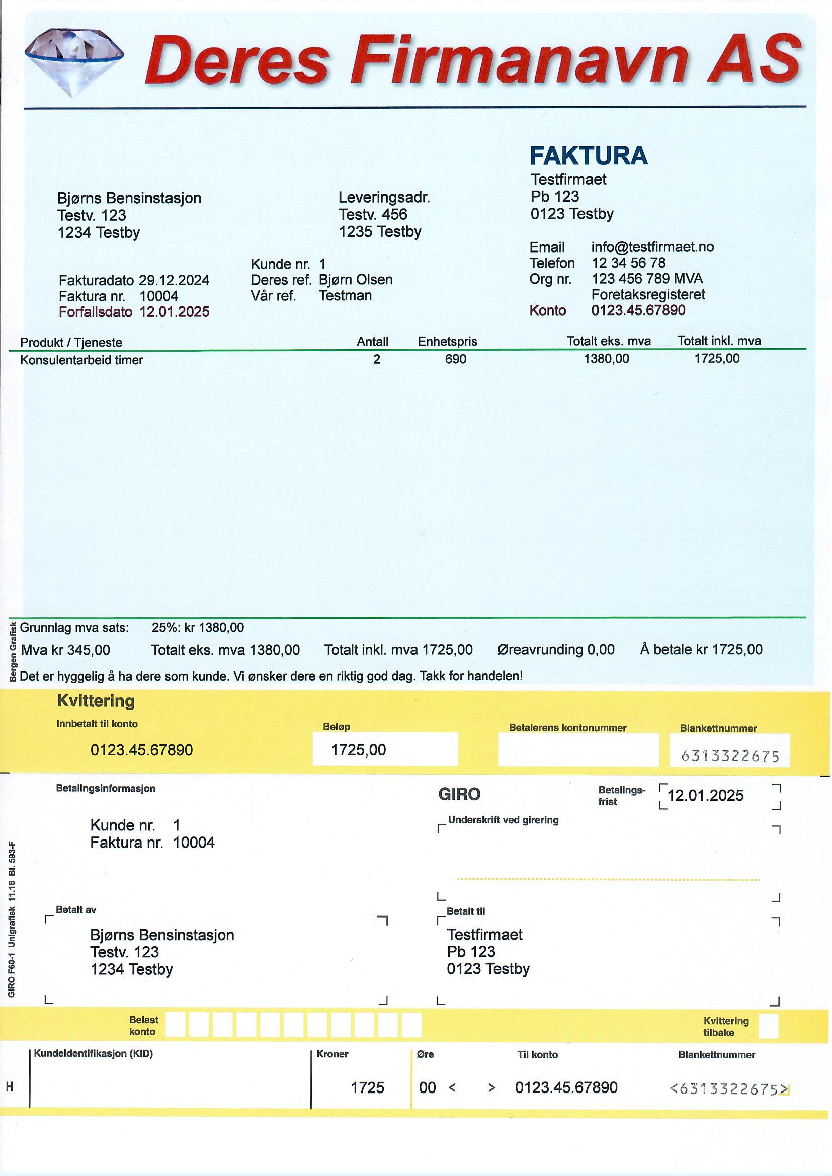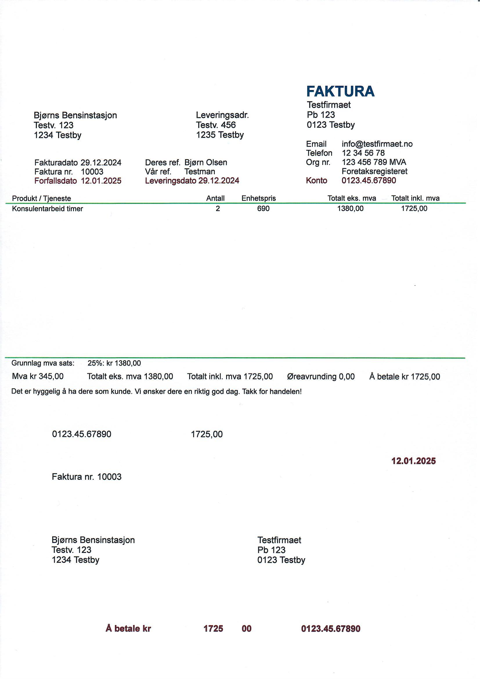 Forøvrig ønskes opplyst at jeg er svært fornøyd med fakturaprogrammet. Dette er benyttet nå i mange år.